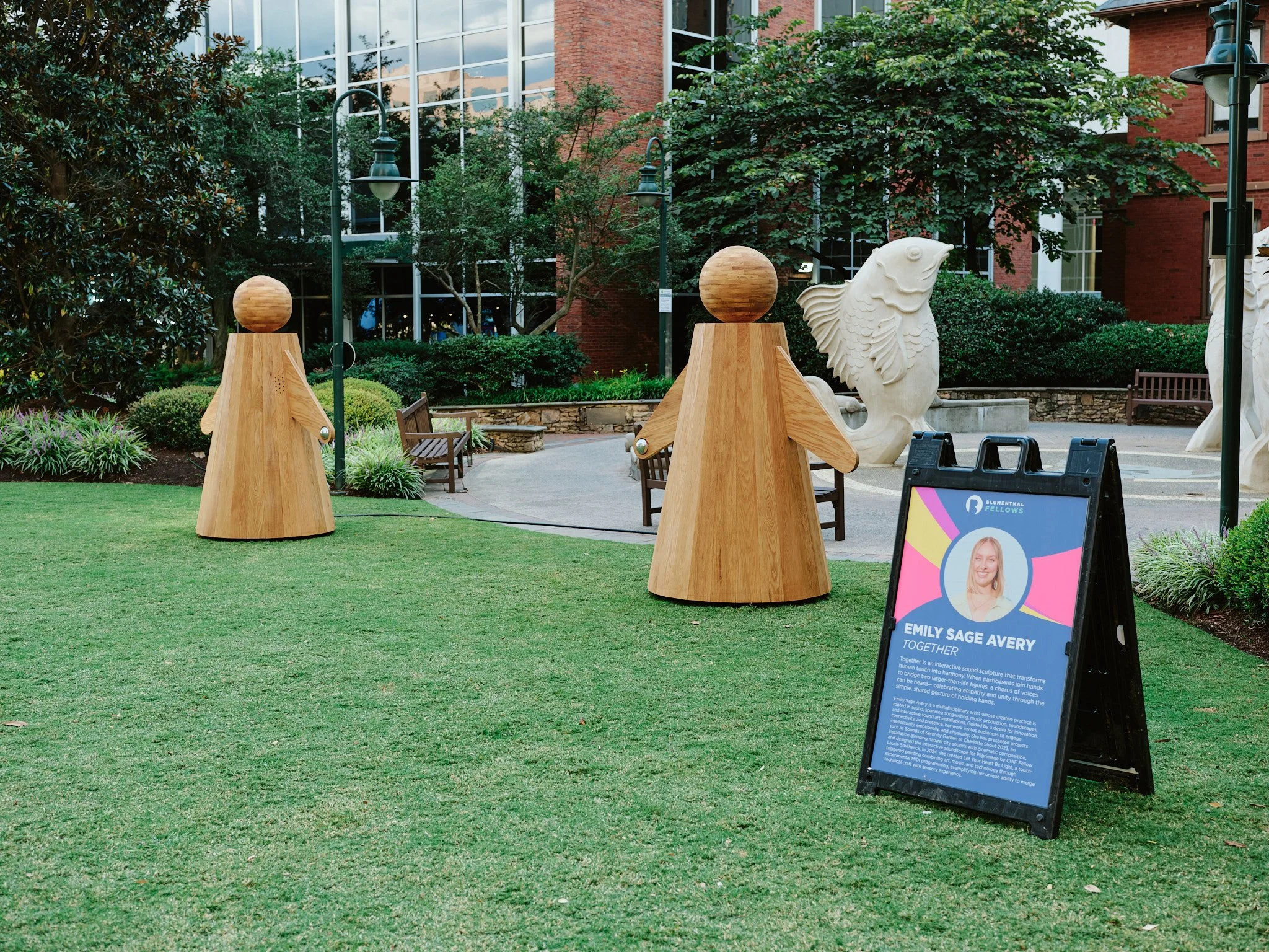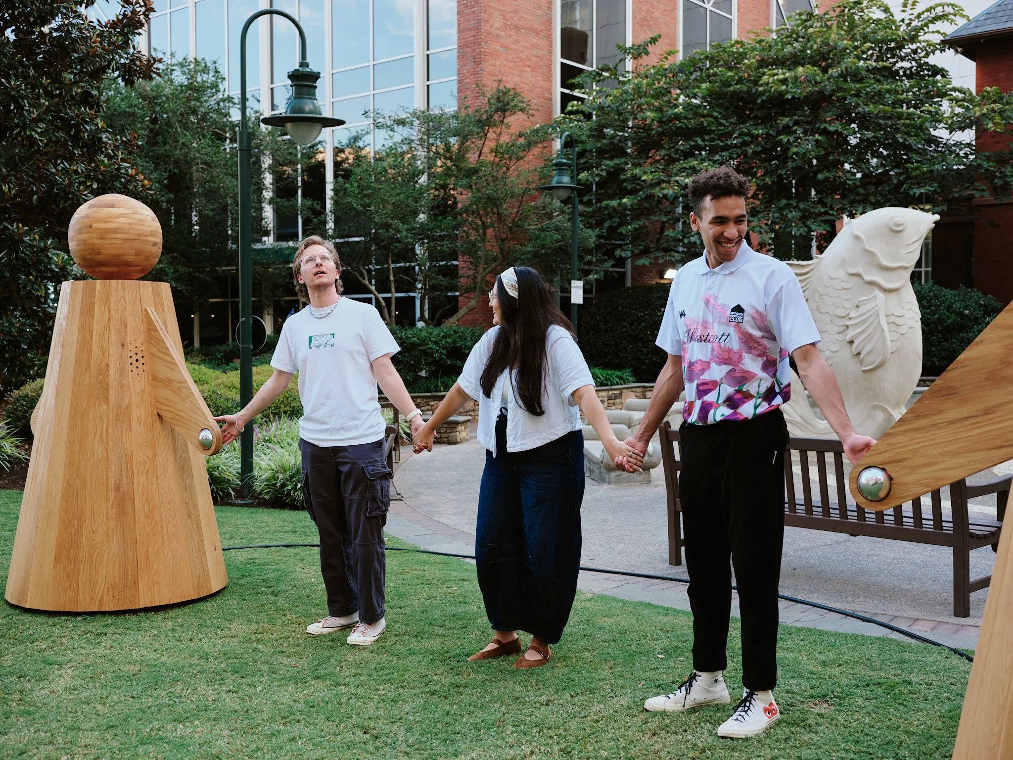 Together is an interactive sound sculpture that transforms human touch into harmony. When participants join hands to bridge two larger-than-life figures, a chorus of voices can be heard celebrating empathy and unity through the simple, shared gesture of holding hands.